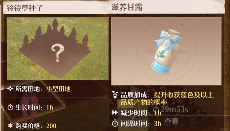 用甘露可以速刷赚钱。铃铃草的成长时间是1小时,甘露是减少1小时生长,可以秒种秒收无cd。但是甘露有100的成本,净利润就会少一些