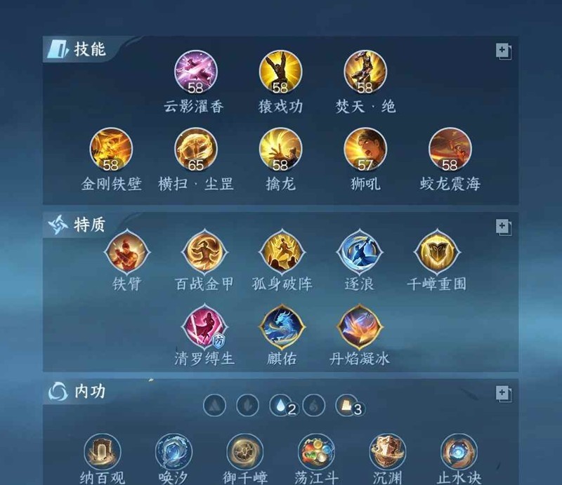 流派:铁壁+横扫+擒龙+狮吼+蛟龙震海
