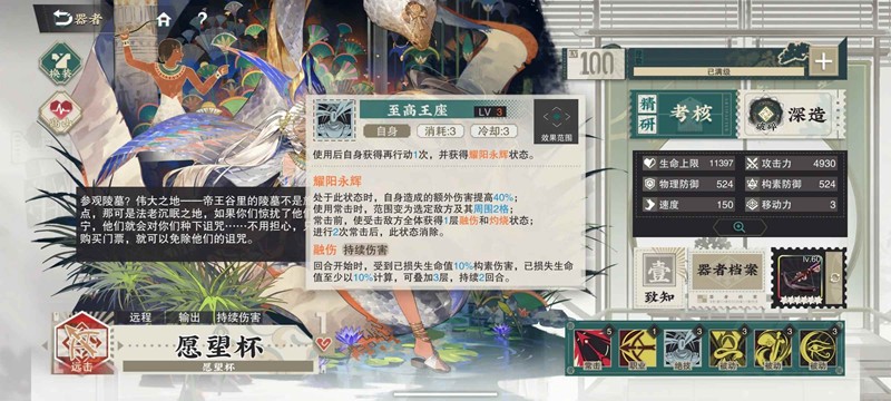 ?被动二:使用职业技能,自身和周围攻击最高友方,伤害+40%(蓄势,一定程度银香囊可被替换),冷却2回合。(相当于自己永久伤害+40%)