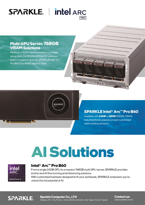 时间:2025-10-09 | 作者: | 阅读:010月9日消息,Sparkle,曾经的旌宇,如今的撼与,回归显卡市场后只做Intel锐炫显卡,但不仅限游戏卡,还有专业卡。