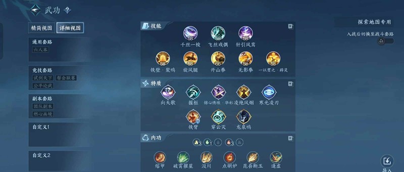 技能携带:必带一以贯之、无影拳、开山拳、旋风腿、铁壁聚鸣。绝技带风城新绝技,群侠带新群侠(绑玉不够还是老赛念吧优先抽新绝技)。