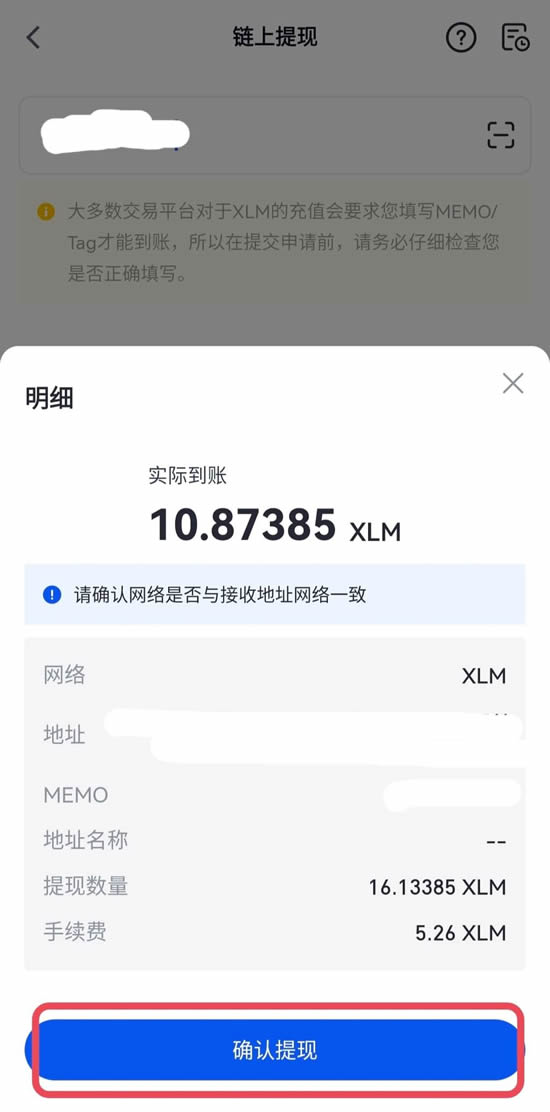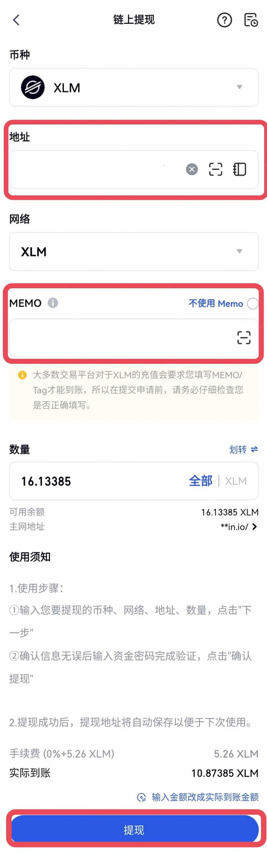 (1)App操作提现Memo/Tag需填写在备注处,切记核实好对方钱包是否需要填写备注标签。