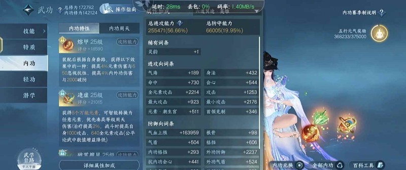 内功词条选择:全元素攻,潮生宫元素,气海,身法,命中,会心,攻击,首领克制,大小攻,破防在元素流收益较低,破防过多会导致融甲变为破防效果