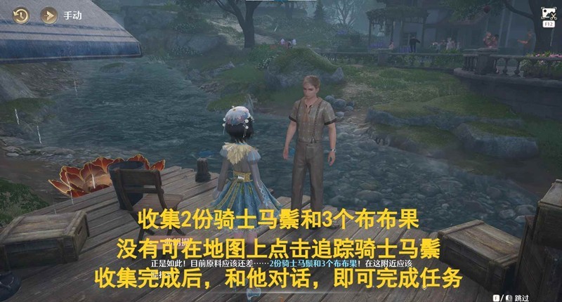 寻找2个骑士马鬃和三个布布果,如果有,可直接继续对话,没有的话,可在地图上追踪骑士马鬃(骑士马鬃只有微风绿野和祈愿树林有)