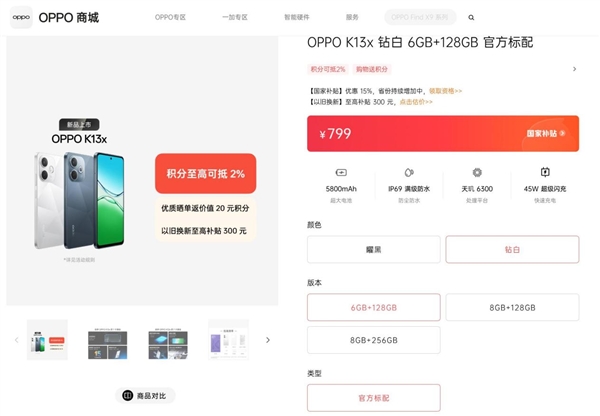 值得一提的是,如果预算不到1000元,不妨考虑同期推出的OPPO K13x,该机同样拥有超强信号、满级防水、金刚石超抗摔架构以及长续航。