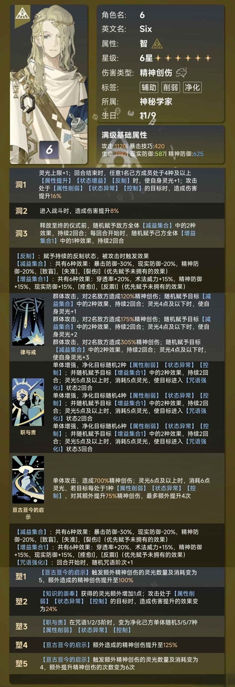 6的特色主要在于 净化 负面效果,不过增伤数值现在有点不够看;