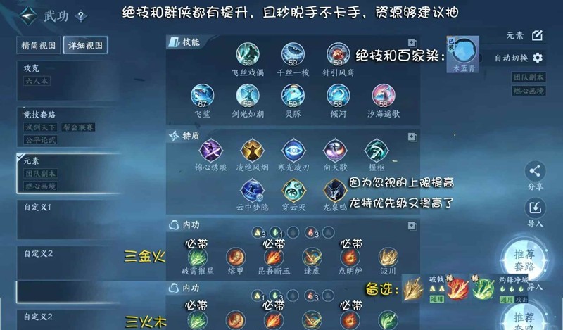 技能,特质,内功。照抄即可,因为换了老四独珍,大家的忽视都会下降一点,龙特的优先级又提升了