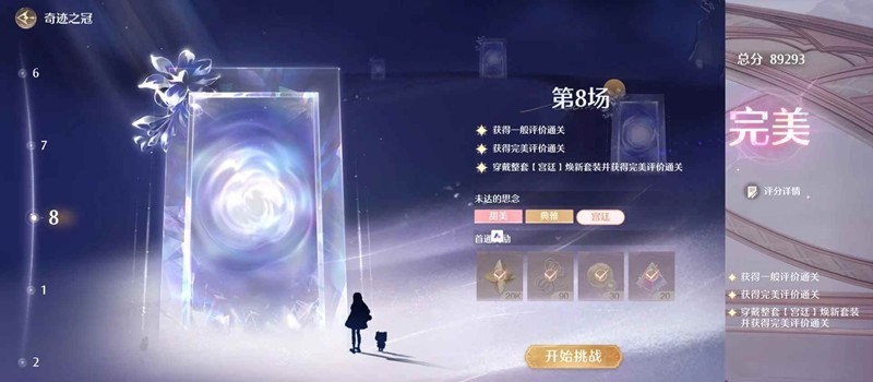 4、第八关三星要求整套【宫廷】焕新,个人实测最低完美线89293。