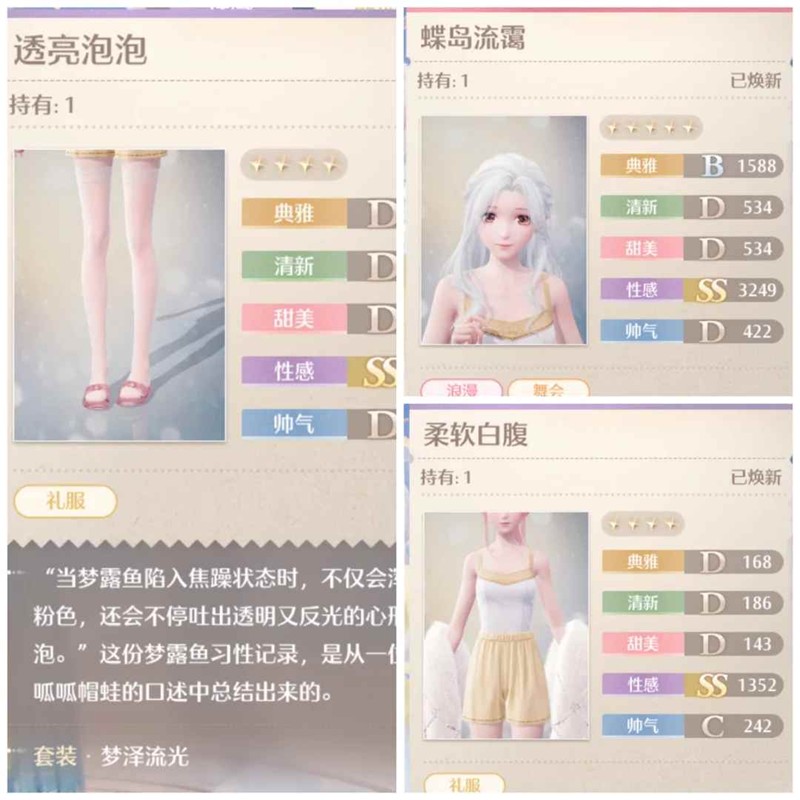 服装分数参考:整套的免活分数差太多了,凑凑其他高分部件就行!)