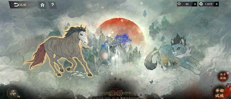 限时试炼场「异兽录」第九期更新“鹿蜀”、“类”关卡,活动开启后收藏家可直接从【演训】-【试炼场】进入。
