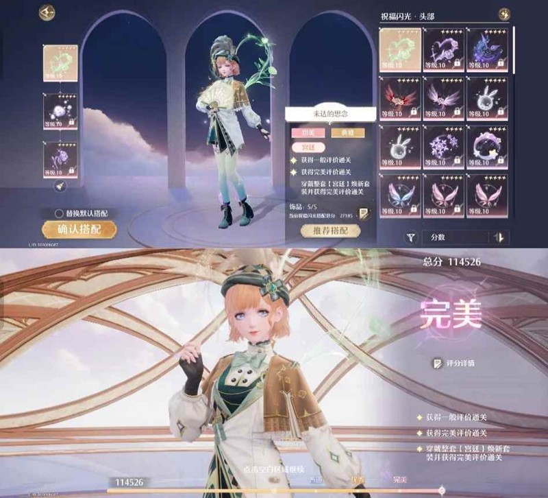 第八关 最后一关要求整套宫廷焕新,符合条件的套装如图9所示,本关属性标签为甜美和典雅,推荐用免费套绿园交响诗。