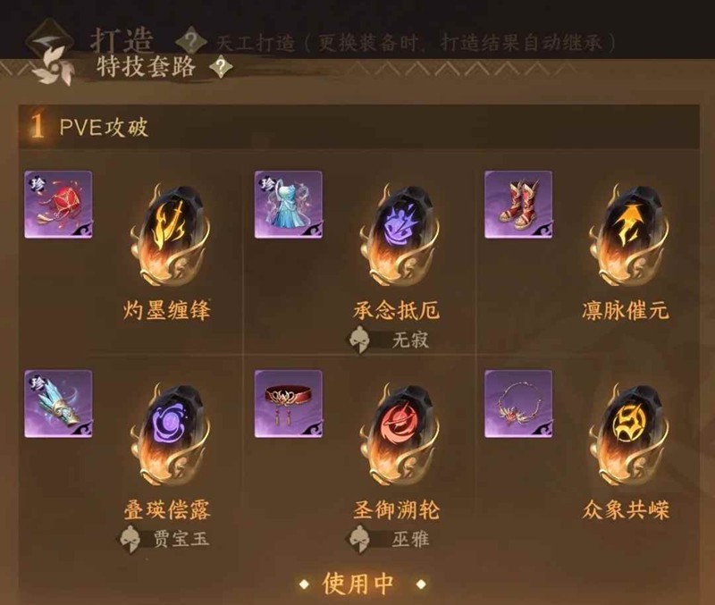 打造:武器灼磨-青刃、鞋子优先会伤、项链最好是灵犀/破梦、防具的不看金红紫(选忽视、破防、元素加的最高的即可)