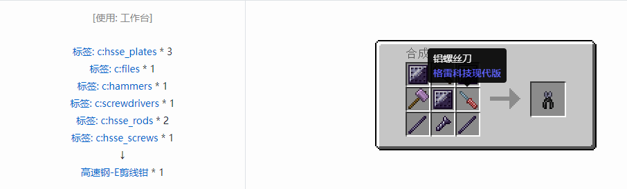 我的世界格雷科技现代版剪线钳合成表大全