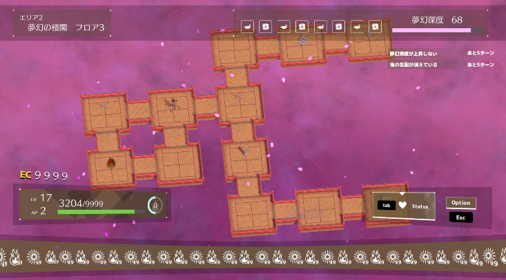 当「花岚踊值」超过 100% 时,即可发动「花岚踊」,释放威力强大的必杀技「花岚樱散」。在本次免费体验版中,玩家將沿著楼层阶梯一路向上,挑战最终楼层的Boss战,并在通关后结束体验。