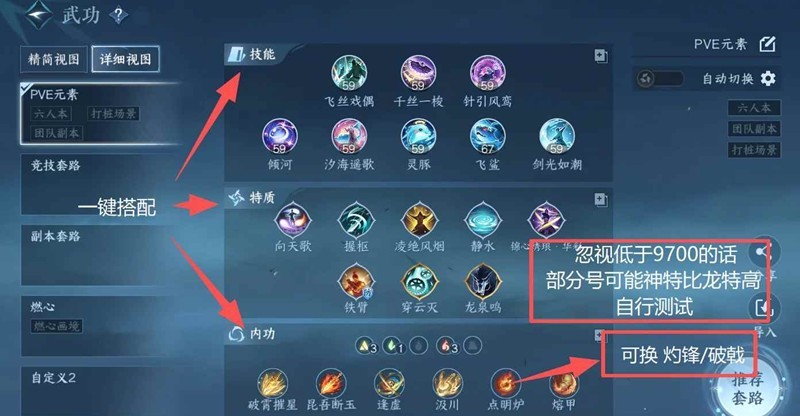 还是老样子,逢虚/熔甲/昆吾/破霄/汲川固定不变,最后一个内功从点名录/灼锋/破戟当中选即可,打桩暂时同词条火木>金火