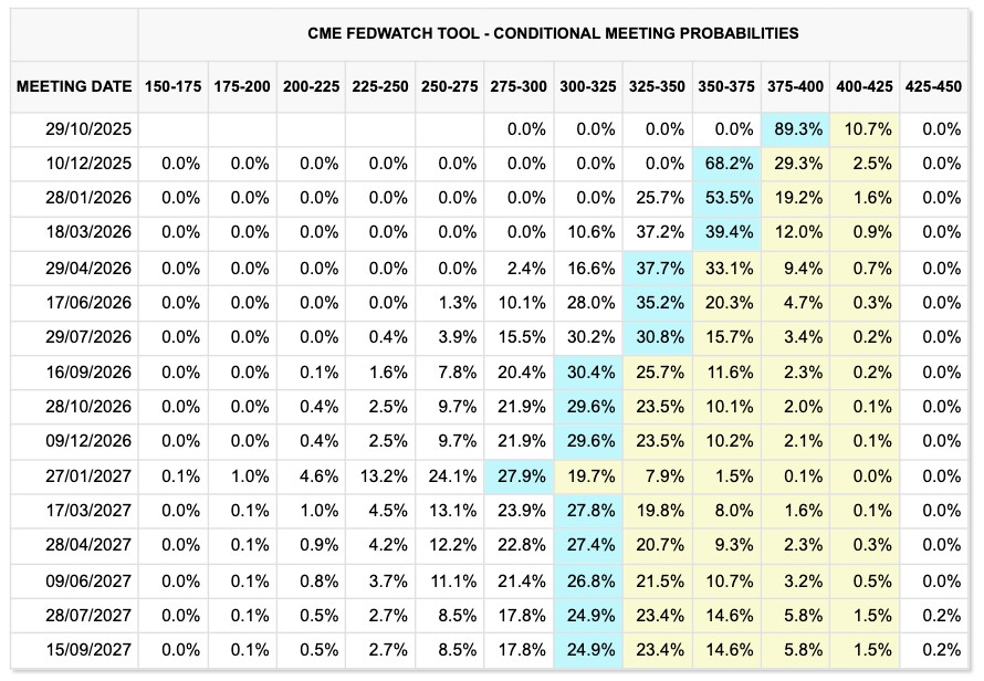 美联储目标利率概率(截图)。来源:CME Group FedWatch Tool