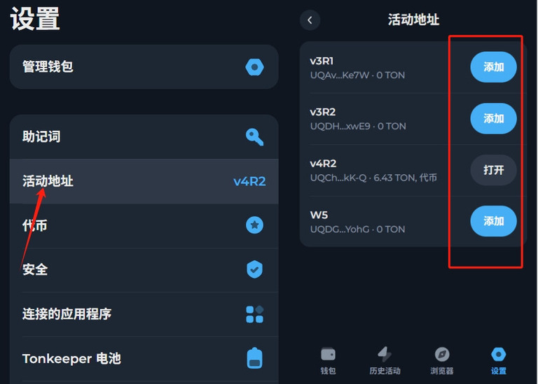 答:请先确认自己的地址是否正确。TON地址与比特币类似,有个多个,需要切换到正确的活动地址。