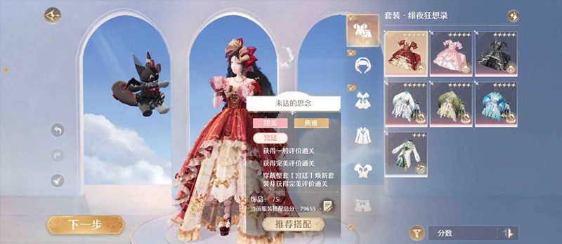 第八场甜美典雅宫廷,满星整套宫廷焕新。有新阁套用新套,实测玩偶套龙套也都可以满,都没有的话就去焕新动物邀约套,一样可以满星。