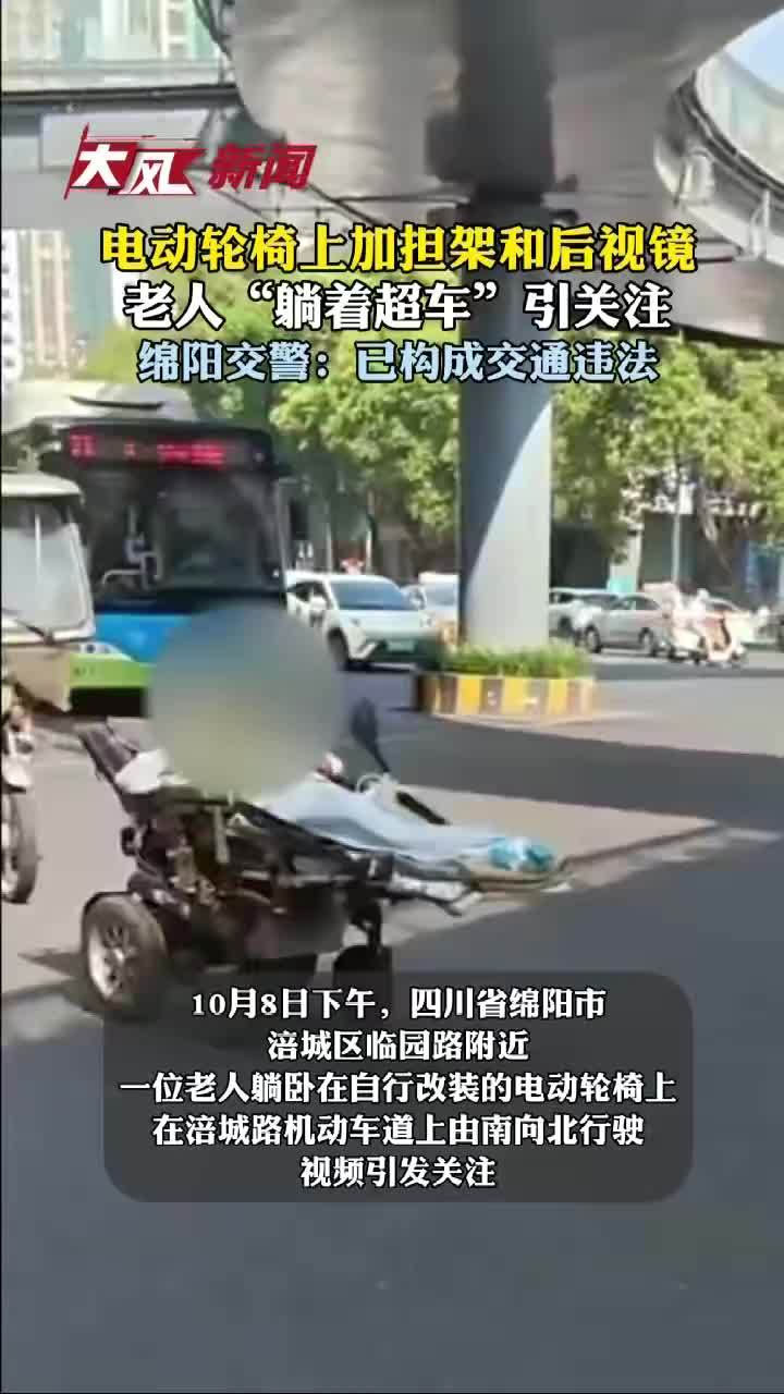 “躺着超车”:老人改装电动轮椅开上机动车道,交警称已构成交通违法