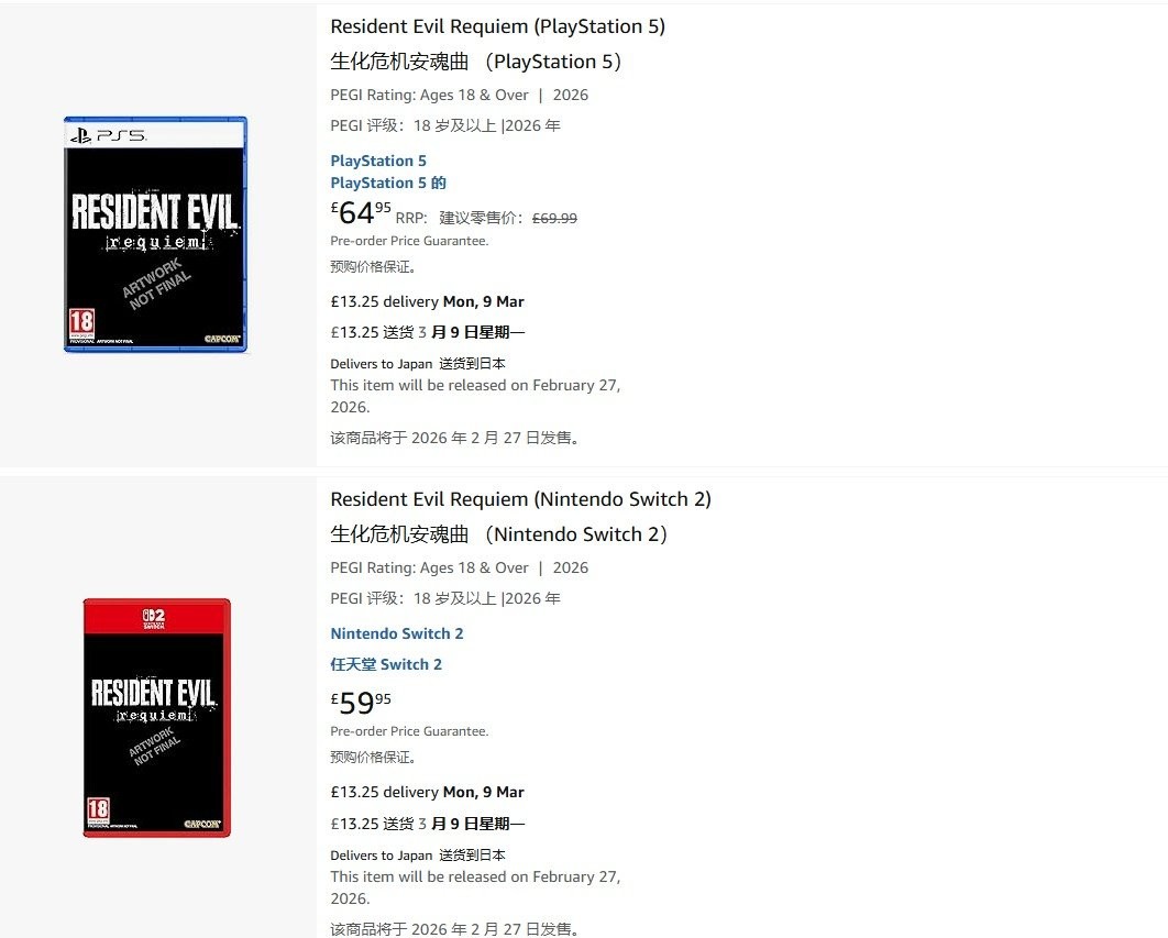 值得注意的是,此前我们曾报道过,根据亚马逊英国页面显示,《生化危机:安魂曲》Switch2版定价为60英镑,PS5版为69镑。虽然尚未得到官方确认,但Switch2实体版很可能采用游戏密钥卡形式而非标准游戏卡带。