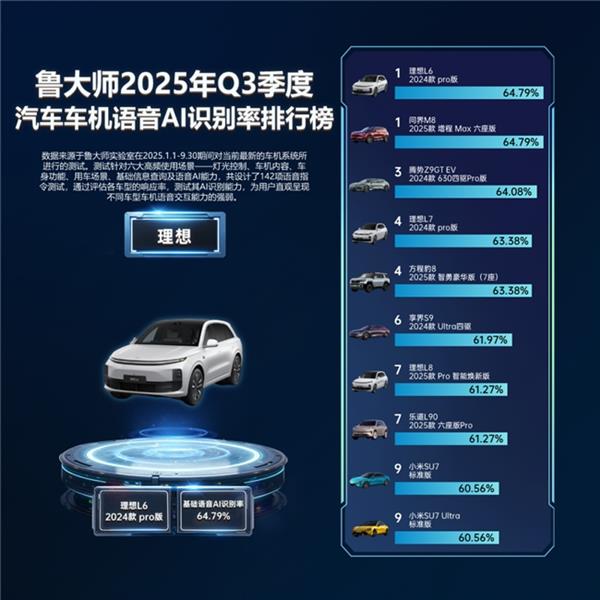 02 车机语音AI识别率榜:理想问界稳居第一,腾势豹8强势入围