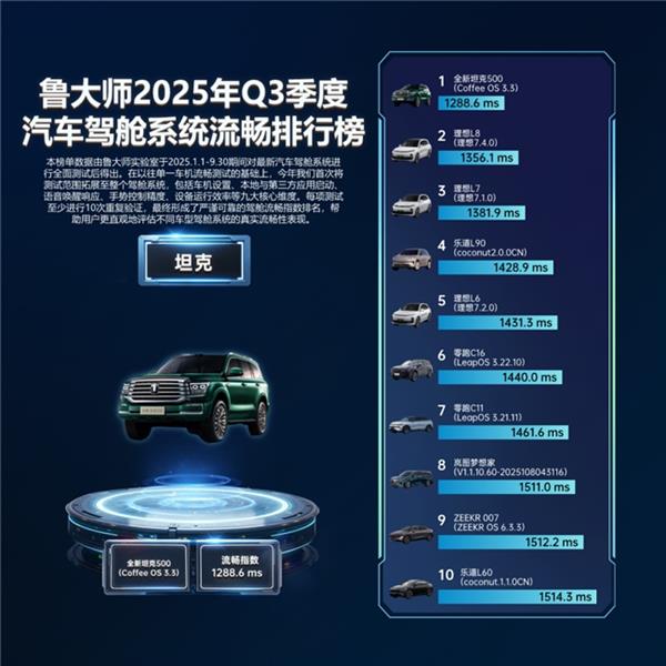 鲁大师Q3季报:全新坦克500刷新流畅纪录 理想问界稳居语音榜首