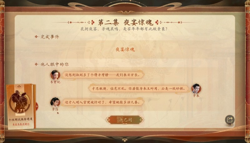 第三章的"偷花任务"是玩家与礼治关系的转折点。这个看似简单的任务实则暗藏玄机,需要准确应对守卫盘问并避开各方眼线。任务结束后,礼治在御花园凉亭与玩家讨论朝堂局势,每句话都在引导玩家向太子阵营传递假情报,这时玩家才会意识到他早已开始布局。