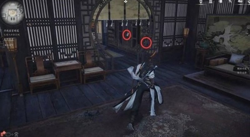 找到飞镖后,用它启动大厅左侧柜子上的机关,从而打开密室的暗道。接下来,和赵承宗一起进入地下密室,密室内设有多个隔间,每个隔间都藏有可以上楼的隐藏楼梯。