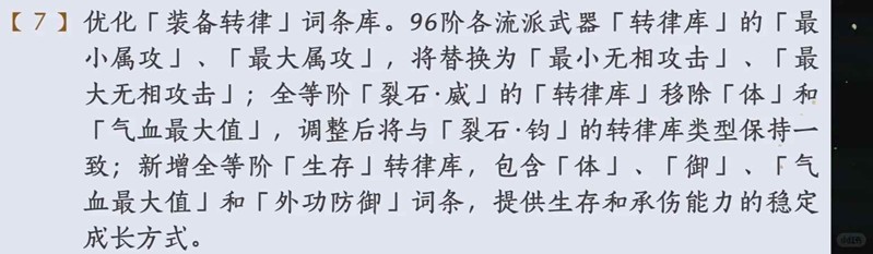 (1)裂石威武库移除了体和气血,现在铁子们终于可以选择威武库转律了
