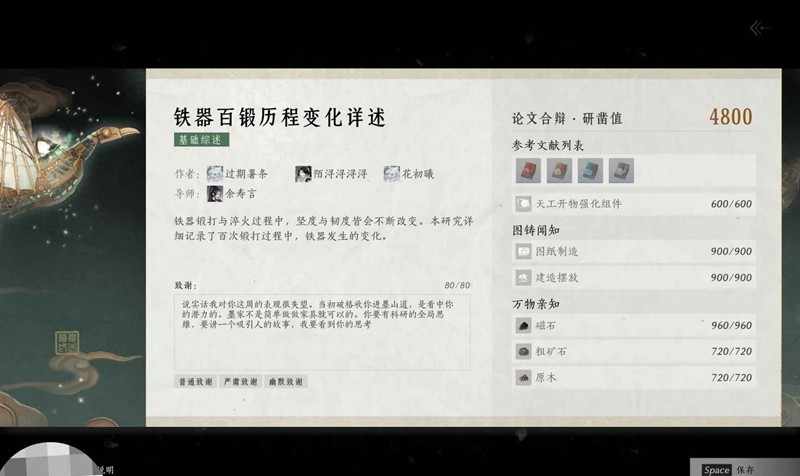 参考文献用来提高你论文几项任务能获取到的研凿值上限,一定要选建造摆放、木头、石头这三个,按照我上面的分解刷木石的流程来非常轻松。