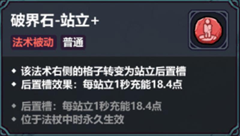 破界石提供的站立类被动技能是整个流派的关键。它能为施法者创造一个稳定的后置输出环境,使输出能力成倍增长。配合注能手印或专注护符等辅助道具,可进一步强化站桩效果。即使面对复杂战况,也能维持施法节奏。这一组合尤其适合追求极限输出的玩家在高难度内容中使用。