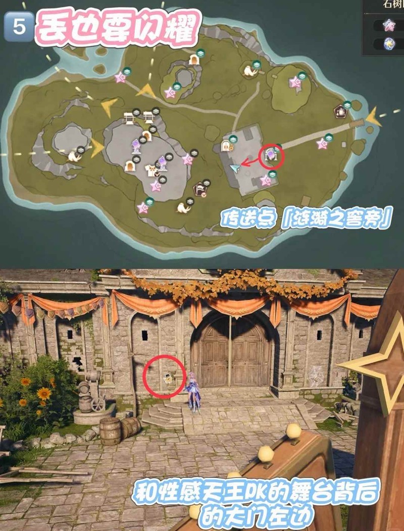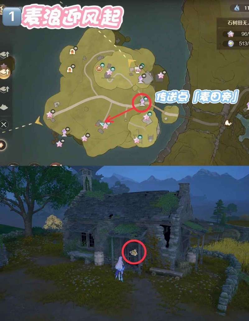 传送至「麦田旁」,往小地图西南方向走至两个小屋,史丢丢在右边屋子的门上。