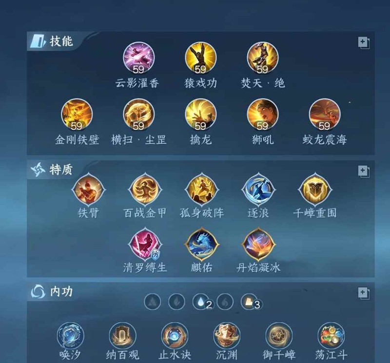 流派:铁壁+横扫+擒龙+狮吼+蛟龙震海