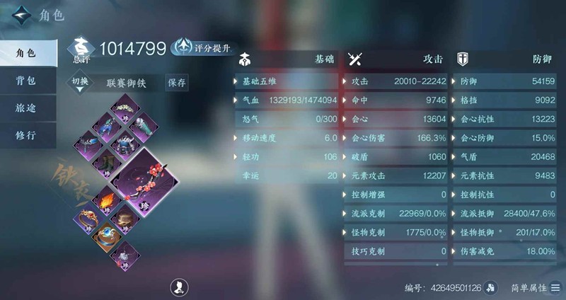 目前来说,纯御铁衣联赛,收益最高的词条属性还是抗会心,然后是气盾,如果抗会心面板达不到1.7万以上的,推荐走气盾流