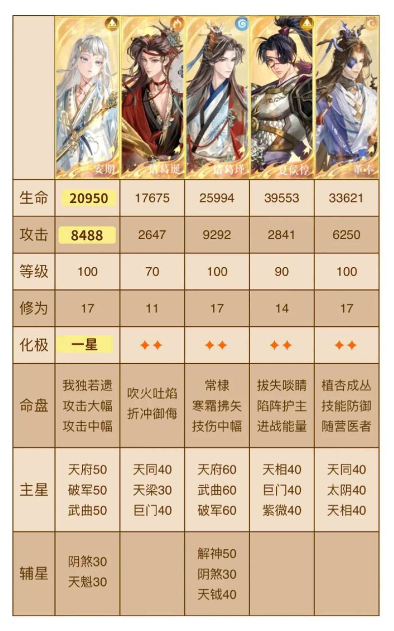 目前可用的龙盾密探除了表中的夏侯惇,还可更换为黄月英和颜良。但用颜良可能会输出不够,如果只有颜良,需要安期、诸葛瑾拥有更高的练度。