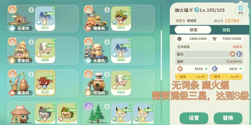 C级米姆每升一级加20经营力,B级加21经营力,A级加22经营力,S级加23经营力,闪光S级24经营力。