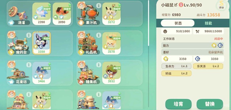 游戏中米姆还分类闪光S,S、A、B、C等级别(每个级别升级提升的经营力也不一样)