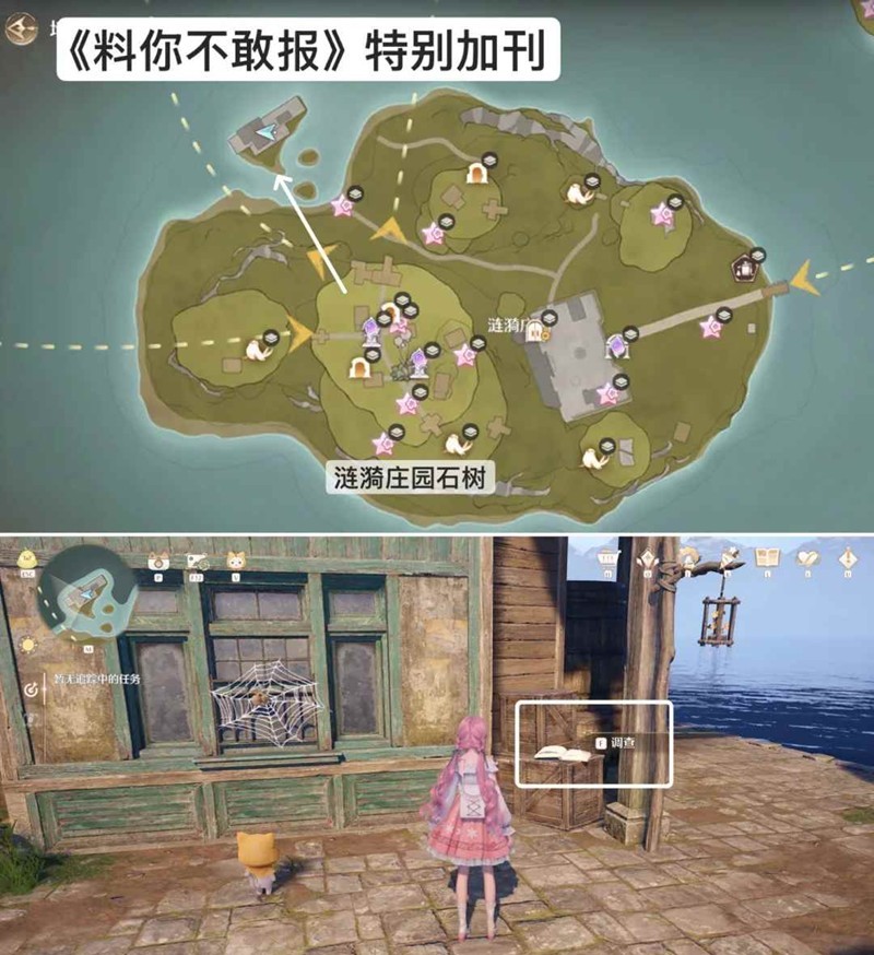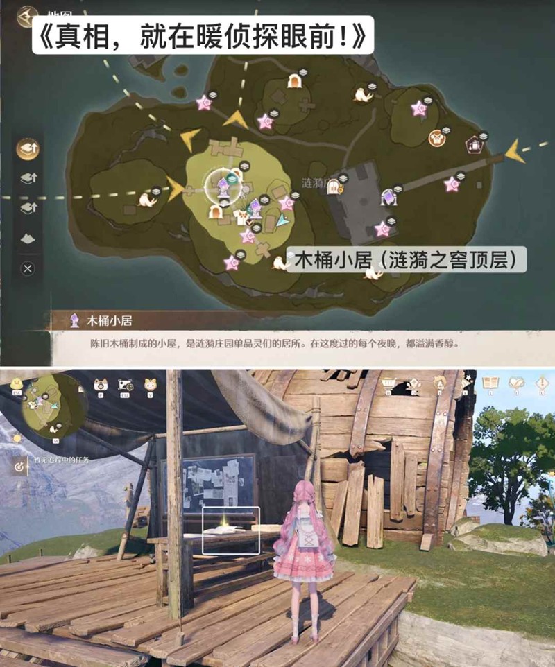 2.《真相,就在暖侦探眼前!》:【木桶小居】右后方,剧情里推理板所在地,石树之心再往前的木桶背后。推理板旁边的桌子上。