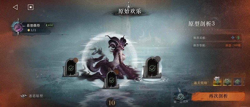 原型剖析:定期开放的进阶挑战关卡,完成“原型补全”全部关卡后,可解锁此关卡。剖析可获得通关奖励,并在【思想偶得】处获得限时奖励。