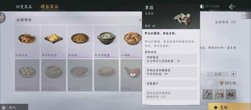 便捷商人4种买空:198野果198蛋198蘑菇297草药