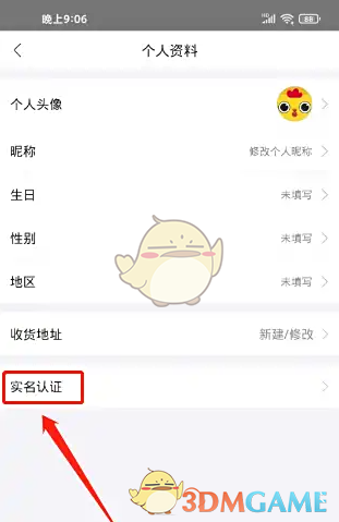 2、进入个人资料,点击(实名认证)选项。