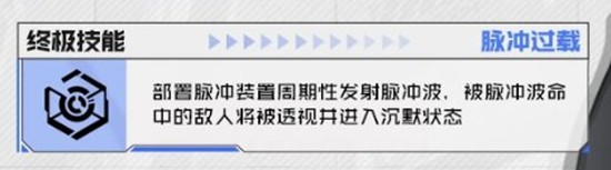 脉冲过载:部署脉冲装置周期性发射脉冲波,被脉冲波命中的敌人将被透视并进入沉默状态。