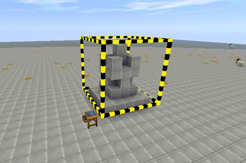 框好之后在区域复制方块旁边放上我们的蓝图工作台就可以进入施工状态了,进入这个状态后,就不可以撤销了,如果强行撤销,区域复制方块和蓝图工作台也会消失。