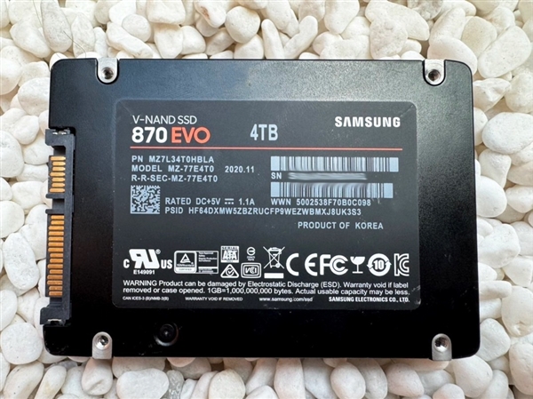 但有个靠谱的事,那就是我们搞来了一块正品的三星870 EVO,为大家展示在不拆开的前提下,如何分辨真伪。