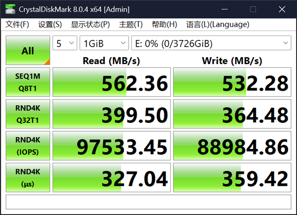 而这块三星870 EVO我们实际测试顺序读取速度达到了562MB/s和532MB/s,可以说是SATA固态硬盘的天花板性能,大家可以作为参考。