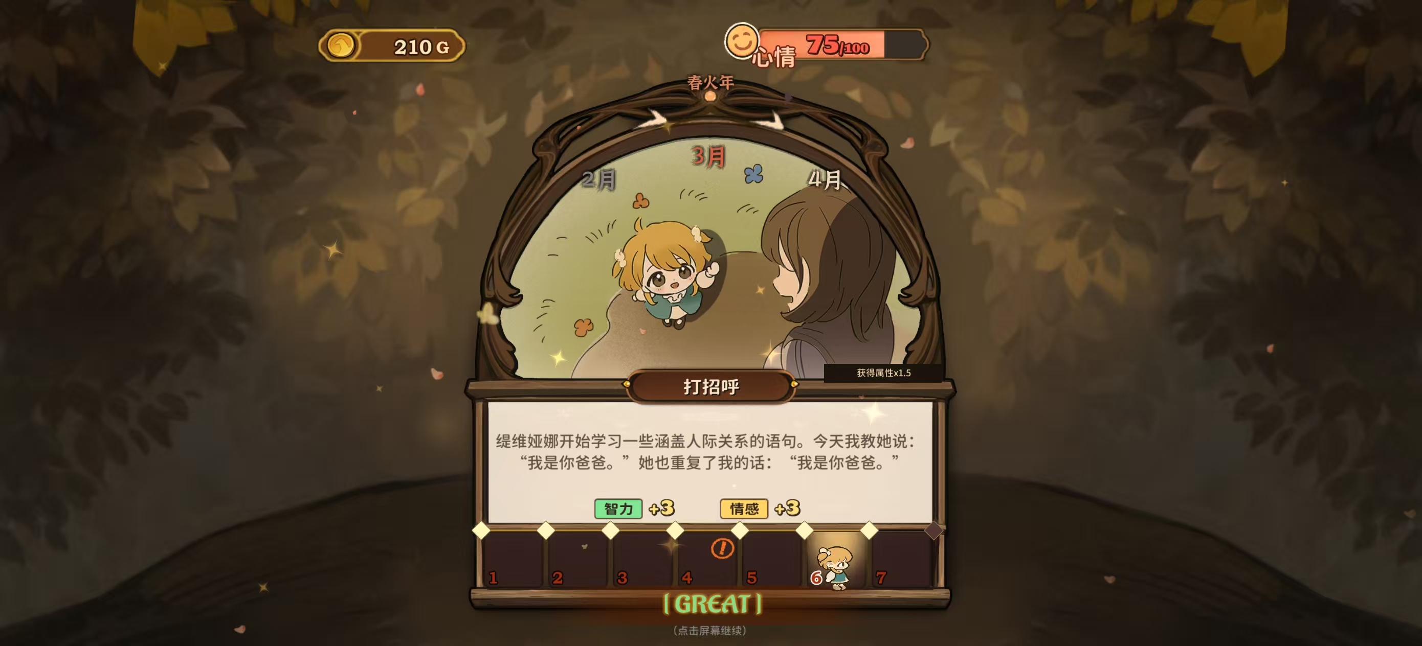 游戏中需要管理的成长维度较为丰富,包括四维属性、学科课程、天赋树、好感度、战斗等级以及装备配置等。特殊剧情还可能引发阵营立场的变化。每日对话是维系亲子关系的重要方式,部分选项会消耗行动力或金币,因此资源规划至关重要。当女儿出现情绪波动时,及时沟通可避免黑暗属性上升。四维属性可通过外出探索和场景互动提升,同时部分课程也会附带属性加成。达到指定条件后自动晋级,无需额外操作。课程安排每日开放五个空位,不同阶段课程内容差异明显,部分项目需支付费用,建议根据当前需求进行策略性选择。