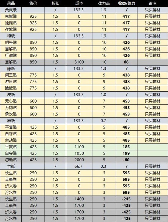 核算考虑到了成本,消耗体力点,价格以及不抢跑的日常折扣情况