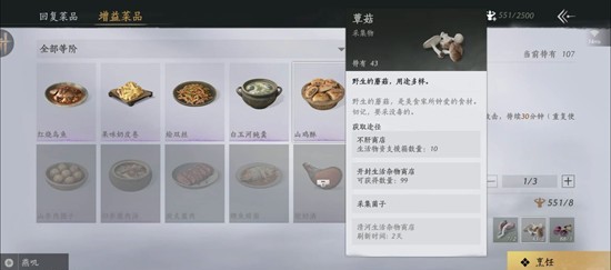 如果连鱼都不愿意炸,全购买省事的话,最推荐鸡子羹,山参肉圆子,红烧乌鱼,盏蒸大肉,这几个,按收益排名。注:野山参用的是倒悬壶价格。