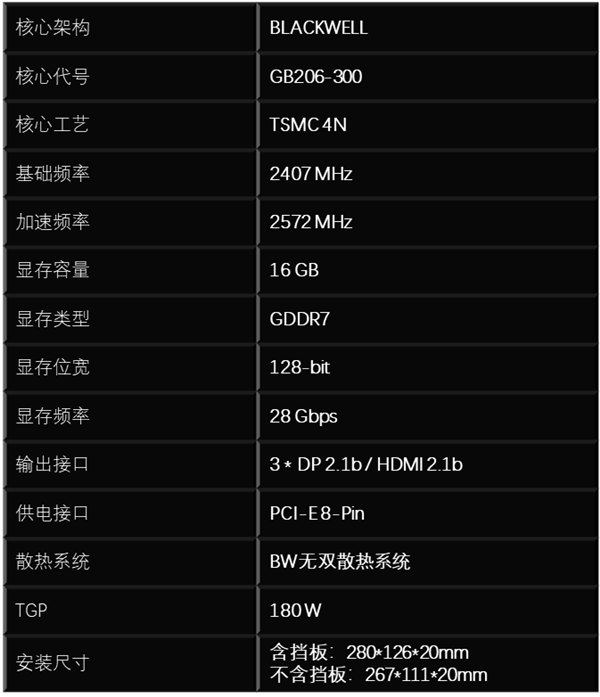 简单看下显卡的详情参数,主要特点就是16GB大小的GDDR7显存,并且不含挡板的尺寸为267*111*20mm的轻薄外观,这在RTX 5060 Ti系列显卡中是非常稀少的,那么事不宜迟,让我们进入详细的介绍环节吧。