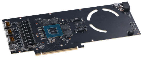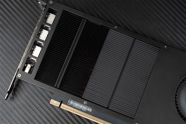 显卡左侧为金属散热鳍片,直接将核心接触的散热鳍片裸露在外,加大散热效率,并且风道由此处与视频接口处吹出。
